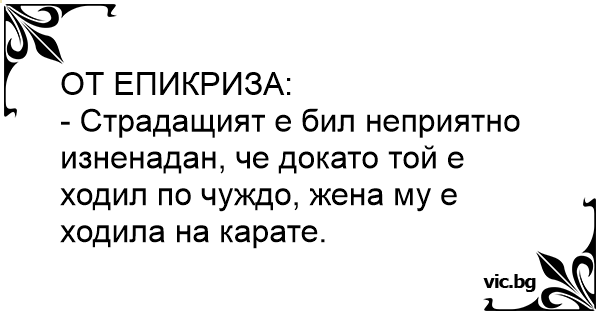 - Страдащият е бил неприятно изненадан, че докато той е ходил по чуждо, жена му е ходила на карате.