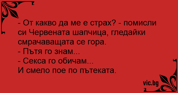 - От какво да ме е страх? - помисли си Червената шапчица, гледайки смрачаващата се гора.