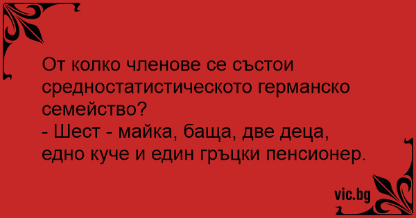 - Шест - майка, баща, две деца, едно куче и един гръцки пенсионер.