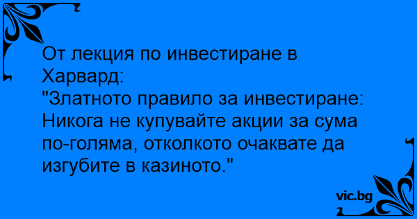 "Златното правило за инвестиране: Никога не купувайте акции за сума по-голяма, отколкото очаквате да изгубите в казиното."