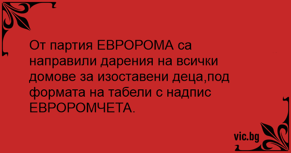 От партия ЕВРОРОМА са направили дарения на всички домове за изоставени деца,под формата на табели с надпис ЕВРОРОМЧЕТА.