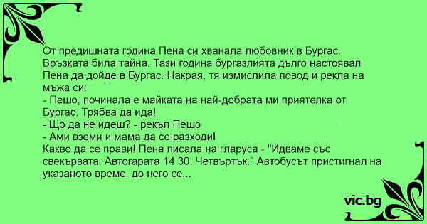 От предишната година Пена си хванала любовник в Бургас.