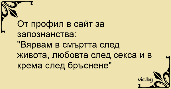 "Вярвам в смъртта след живота, любовта след cekca и в крема след бръснене"