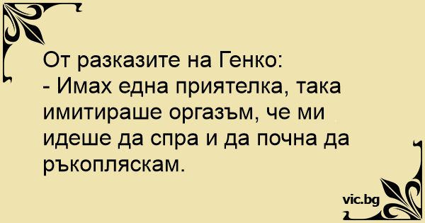 - Имах една приятелка, така имитираше opгaзъm, че ми идеше да спра и да почна да ръкопляскам.
