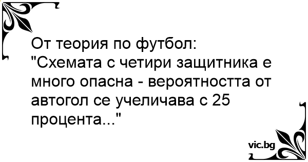 "Схемата с четири защитника е много опасна - вероятността от автогол се учеличава с 25 процента..."