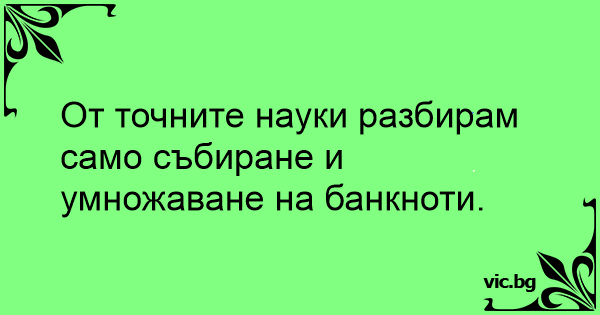 От точните науки разбирам само събиране и умножаване на банкноти.