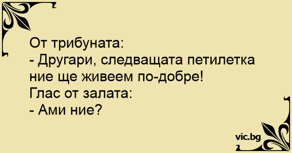 - Другари, следващата петилетка ние ще живеем по-добре!