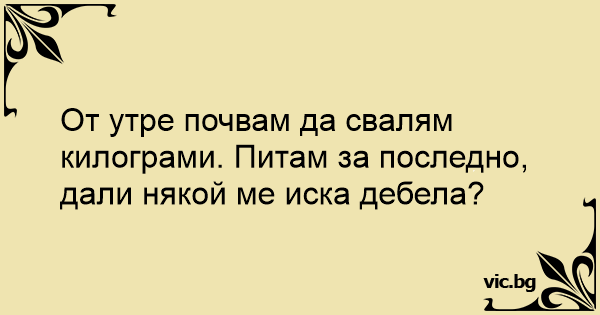 От утре почвам да свалям килограми. Питам за последно, дали някой ме иска дебела?