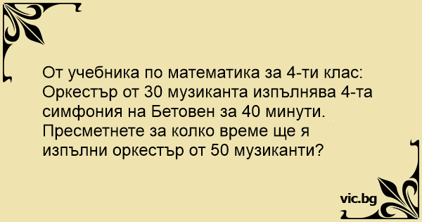 Пресметнете за колко време ще я изпълни оркестър от 50 музиканти?