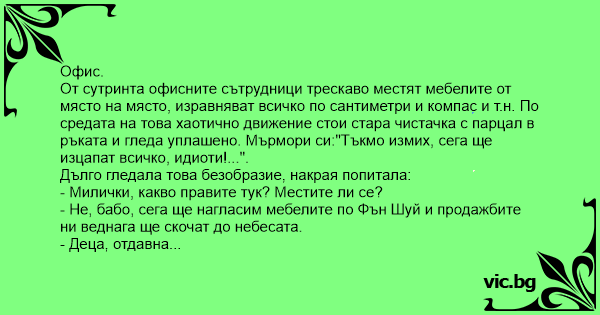 • Вицове от Facebook от нашата страница https://www.facebook.com/www.vic.bg