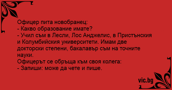 • Вицове от Facebook от нашата страница https://www.facebook.com/www.vic.bg