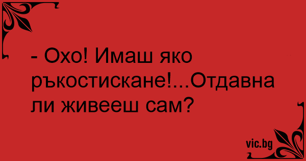 - Охо! Имаш яко ръкостискане!...Отдавна ли живееш сам?