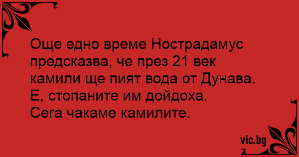 Още едно време Нострадамус предсказва, че през 21 век камили ще пият вода от Дунава.