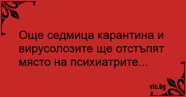 Още седмица карантина и вирусолозите ще отстъпят място на психиатрите...