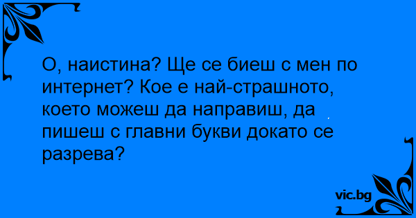 О, наистина? Ще се биеш с мен по интернет? Кое е най-страшното, което можеш да направиш, да пишеш с главни букви докато се разрева?