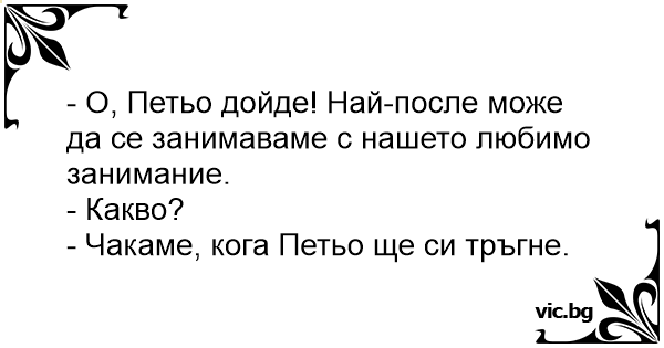 - О, Петьо дойде! Най-после може да се занимаваме с нашето любимо занимание.