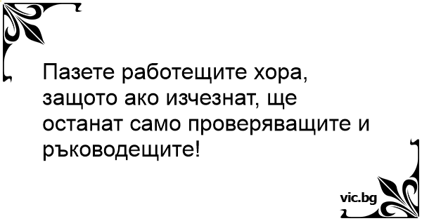 Пазете работещите хора, защото ако изчезнат, ще останат само проверяващите и ръководещите!