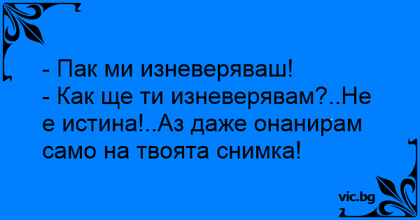 - Как ще ти изневерявам?..Не е истина!..Аз даже онанирам само на твоята снимка!