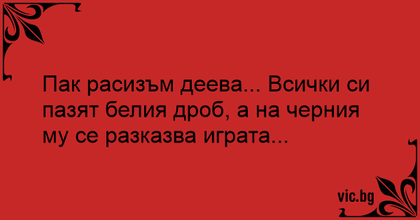 Пак расизъм деева... Всички си пазят белия дроб, а на черния му се разказва играта...