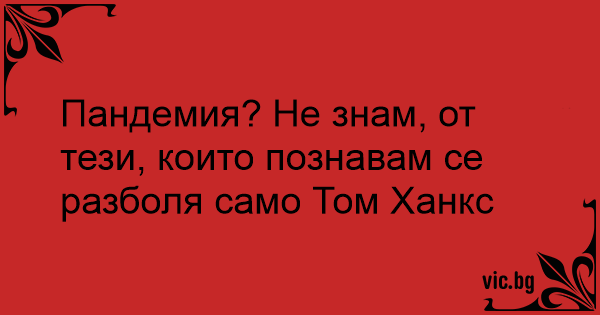 Пандемия? Не знам, от тези, които познавам се разболя само Том Ханкс