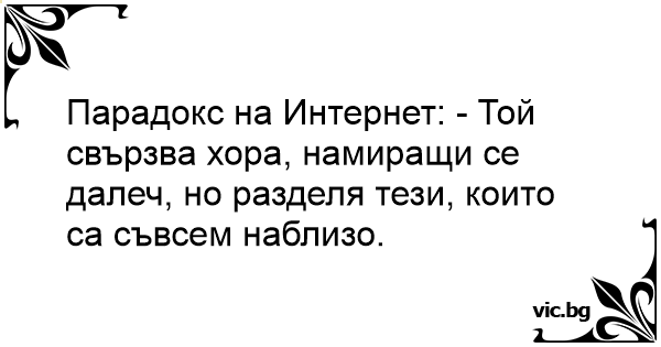 Парадокс на Интернет: - Той свързва хора, намиращи се далеч, но разделя тези, които са съвсем наблизо.