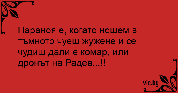 Параноя е, когато нощем в тъмното чуеш жужене и се чудиш дали е комар, или дронът на Радев...!!