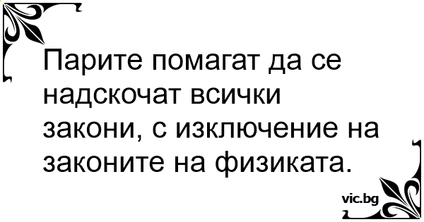 Парите помагат да се надскочат всички закони, с изключение на законите на физиката.