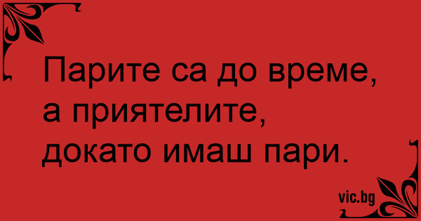 Парите са до време, а приятелите, докато имаш пари.
