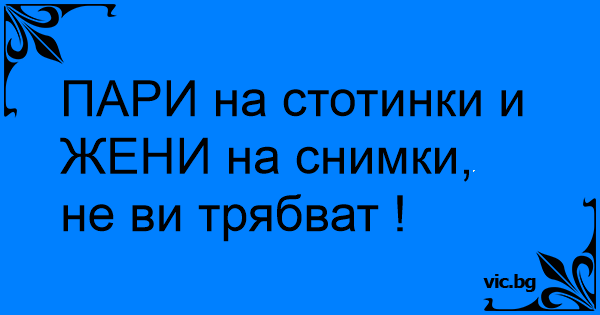 ПАРИ на стотинки и ЖЕНИ на снимки, не ви трябват !