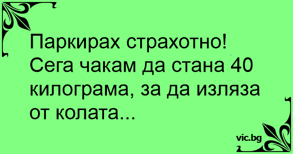 Сега чакам да стана 40 килограма, за да изляза от колата...