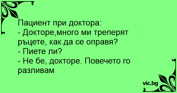 - Докторе,много ми треперят ръцете, как да се оправя?