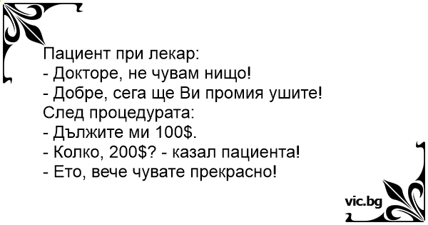 - Колко, 200$? - казал пациента!