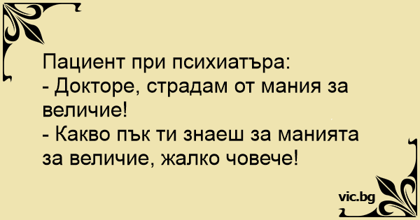 - Докторе, страдам от мания за величие!