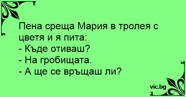 • Вицове от Facebook от нашата страница https://www.facebook.com/www.vic.bg