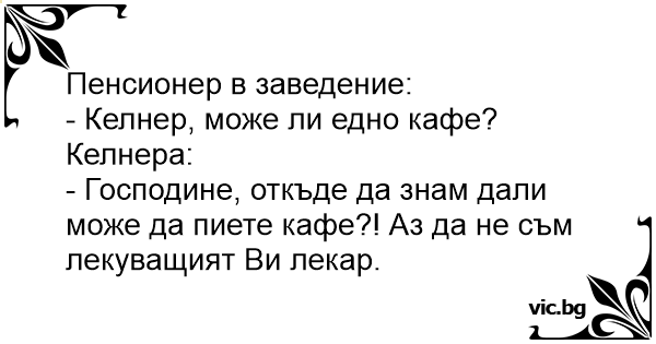 - Господине, откъде да знам дали може да пиете кафе?! Аз да не съм лекуващият Ви лекар.