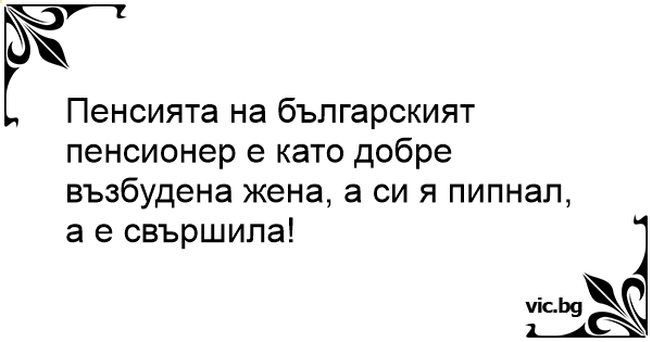 Пенсията на българският пенсионер е като добре възбудена жена, а си я пипнал, а е свършила!