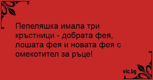 Пепеляшка имала три кръстници - добрата фея, лошата фея и новата фея с омекотител за ръце!