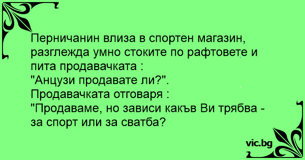Перничанин влиза в спортен магазин, разглежда умно стоките по рафтовете и пита продавачката :
