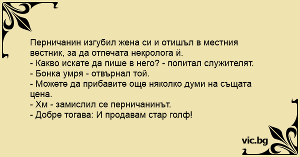 Умряла Гергина. Отишъл мъжът и Кольо да публикува жалейка във вестника.
