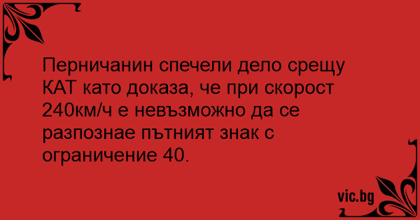 Перничанин спечели дело срещу КАТ като доказа, че при скорост 240км/ч е невъзможно да се разпознае пътният знак с ограничение 40.