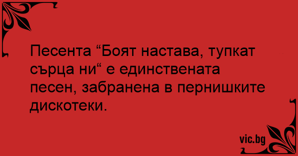 Песента “Боят настава, тупкат сърца ни“ е единствената песен, забранена в пернишките дискотеки.