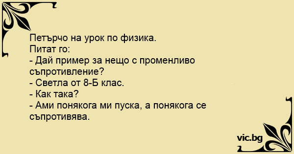 Петърчо на урок по физика.