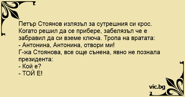 • Вицове от Facebook от нашата страница https://www.facebook.com/www.vic.bg