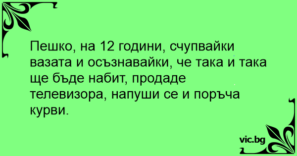 Пешко, на 12 години, счупвайки вазата и осъзнавайки, че така и така ще бъде набит, продаде телевизора, напуши се и поръча kуpbи.