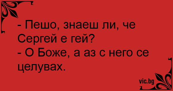 - Пешо, знаеш ли, че Сергей е гeй?