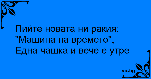 Пийте новата ни ракия: "Машина на времето", Една чашка и вече е утре