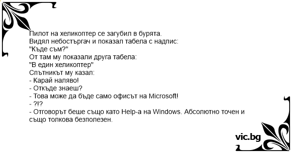 - Отговорът беше също като Help-а на Windows. Абсолютно точен и също толкова безполезен.