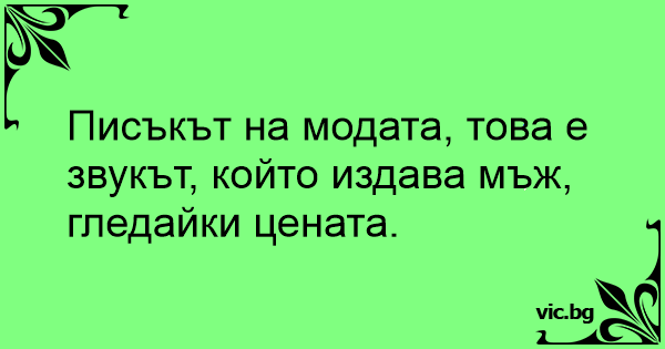 Писъкът на модата, това е звукът, който издава мъж, гледайки цената.