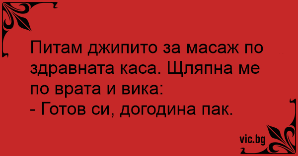 Питам джипито за масаж по здравната каса. Щляпна ме по врата и вика: