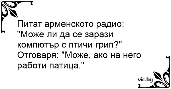 Питат арменското радио: "Може ли да се зарази компютър с птичи грип?"